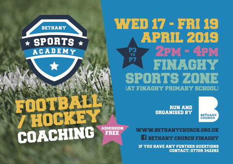 Event run and organised by Bethany Church Finaghy. Football Coaching delivered by an IFA qualified coach and Hockey Coaching delivered by an IHA qualified coach.